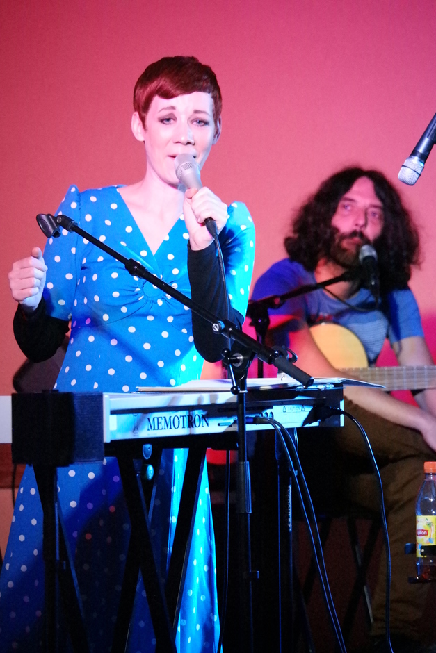 _Das Publikum zeigte seine Begeisterung lautstark nach jedem Titel: „In dieser Stadt“ von Hildegard Knef, „Amsterdam“ von Jacques Brel, „Mein Mann ist verhindert“ von Marlene Dietrich und viele Eigenkompositionen, zum Beispiel „Kosmopolit“. Auch einige Instrumentalstücke waren zu hören. _