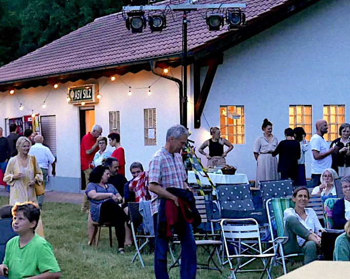 Lang anhaltender, herzlicher Applaus war der Dank des Publikums an das Chawwerusch-Ensemble für einen großen Theaterabend am Silzer See. Im Namen des Bürgervereins überreichte die Vorsitzende Katharina Körner-Boos noch einen Präsentkorb. Sie dankte allen Ehrenamtlichen, die beim Auf- und Abbau der Bühne in der heißen Sonne geschwitzt hatten, ebenso allen anderen Helferinnen und Helfern sowie dem Angelsportverein, der an seinem Vereinsheim für kühle Getränke sorgte.