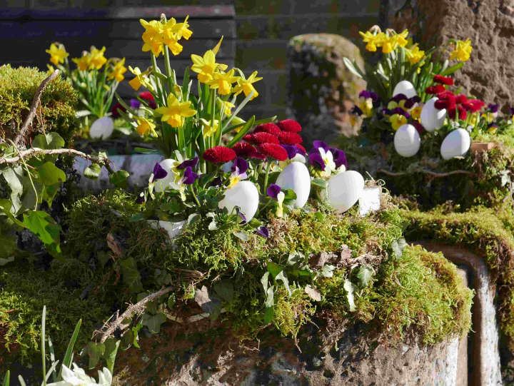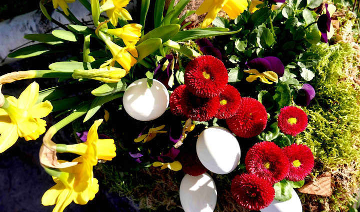 Leuchtende Blüten zwischen Moos und grünen Zweigen. Wieder stimmt uns der geschmückte Brunnen am Lindenplatz auf den sehnlichst erwarteten Frühling ein. So ist seit vielen Jahren Tradition in Silz.