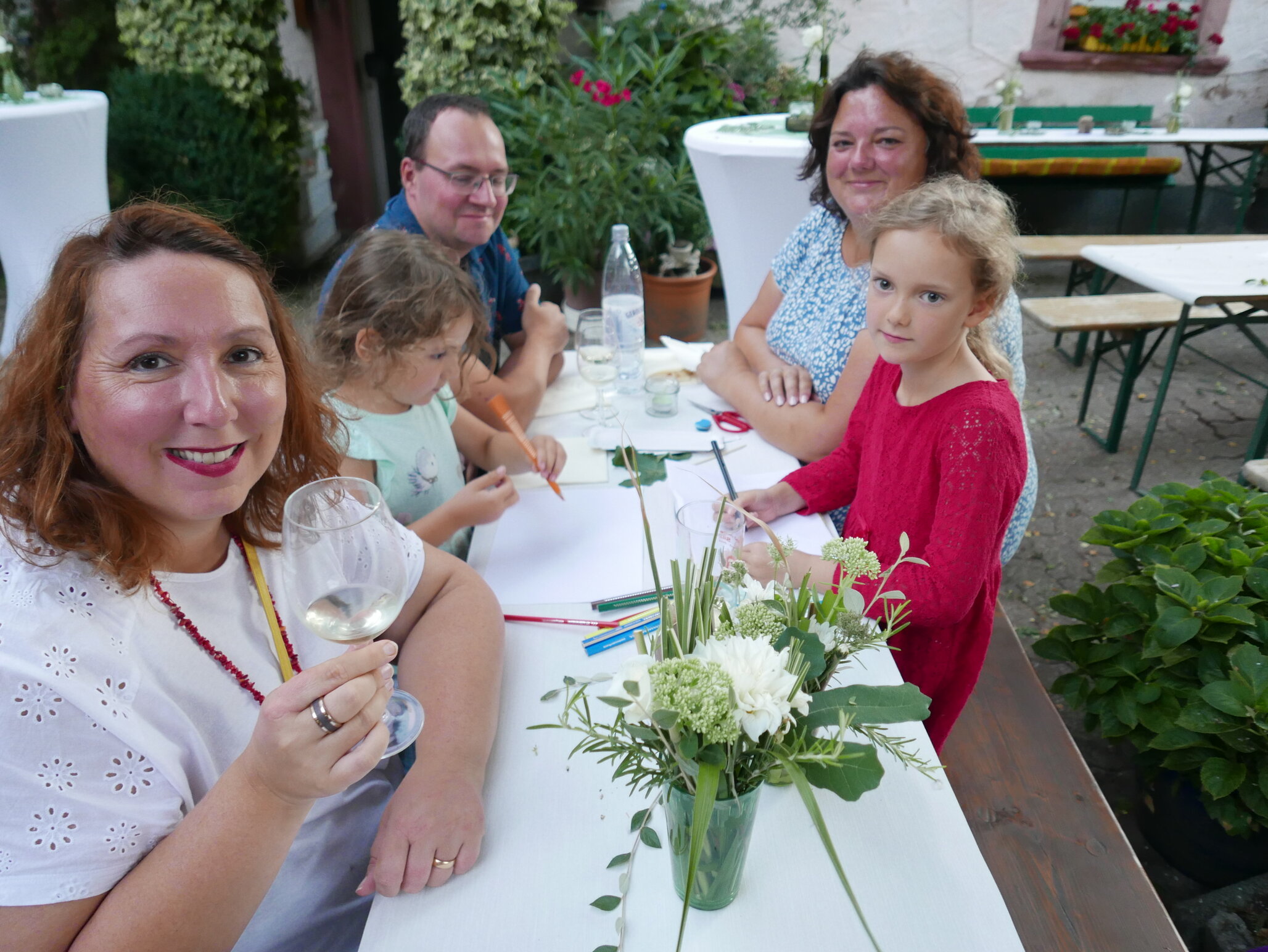 Angesprochen fühlten sich auch einige Busreisende aus Lüneburg, die sich dazu gesellten. Norddeutsch und Pfälzisch – passt prächtig und wurde generationsübergreifend ausgetauscht. Feiern im Sommer ist einfach schön, mit etwa 70 Gästen, die die kleineren Fest-Formate schätzen.